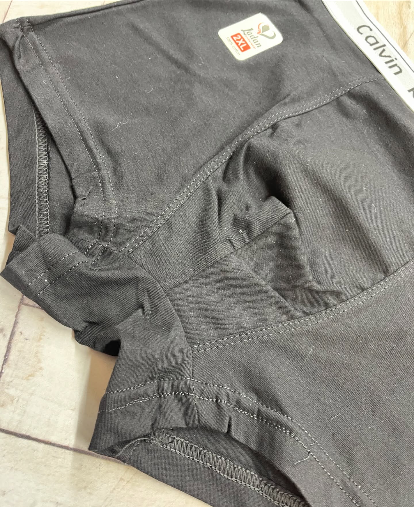 شورت نیم پا تک رنگ مشکی نخ پنبه کش‌کلوین مردانه مارک لادن (جین ۱۲تایی)